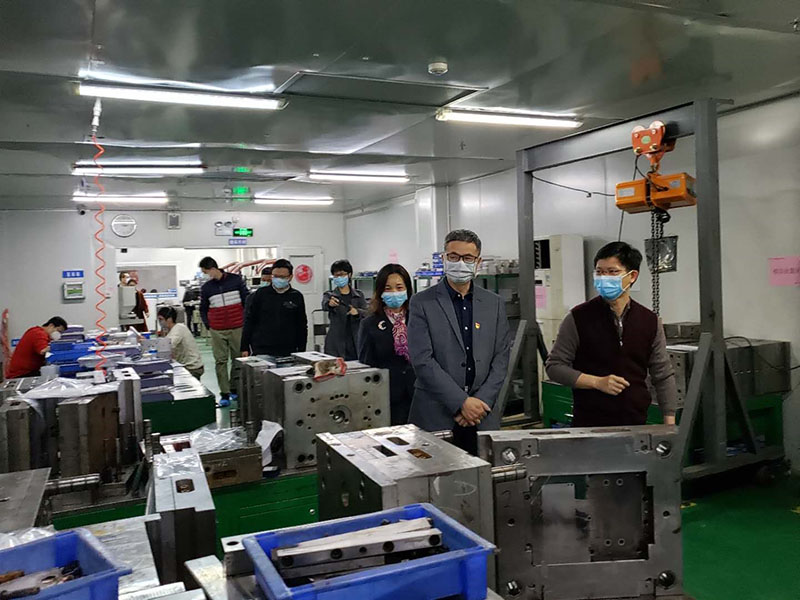 公司高管陪同市領(lǐng)導參觀(guān)了注塑、模切、組裝車(chē)間、公司食堂等區域。參觀(guān)結束后的溝通會(huì )議上,人力資源部經(jīng)理周旋就公司復工防疫落實(shí)情況向市領(lǐng)導進(jìn)行了匯報,包括防疫小組成立情況、公司的防疫方案、防疫物資準備情況、廠(chǎng)區食堂及宿舍人員管控和安排情況、公司履行社會(huì )責任的捐贈情況,以及公司目前存在的需要政府支持的困難。